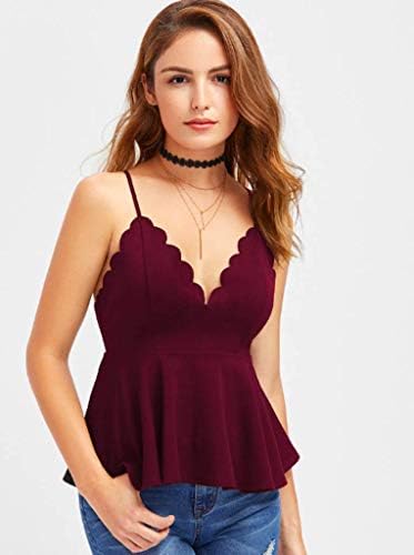 شي ان بلوزة ظهرها مفتوح عنابي قبة V نساء Amazon Ae