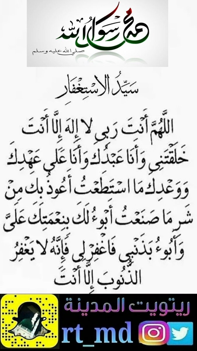 فايز الشمري Twitterren اللهم أنت ربي لا إله إلا أنت خلقتني وأنا عبدك وأنا على عهدك ووعدك ما استطعت أعوذ بك من شر ما صنعت أبوء لك بنعمتك علي وأبوء لك بذنبي