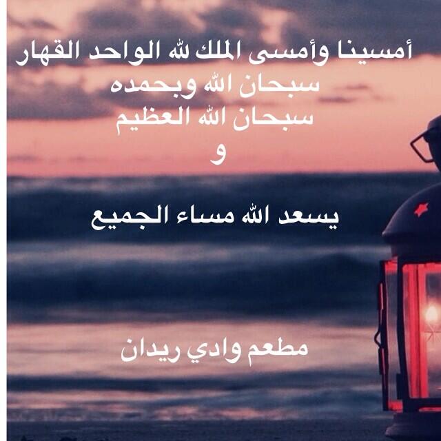 مطعم وادي ريدان Ar Twitter من أذكار المساء أمسينا وأمسى الملك لله الواحد القهار سبحان الله وبحمده سبحان الله العظيم Http T Co Cv0ilp2oml
