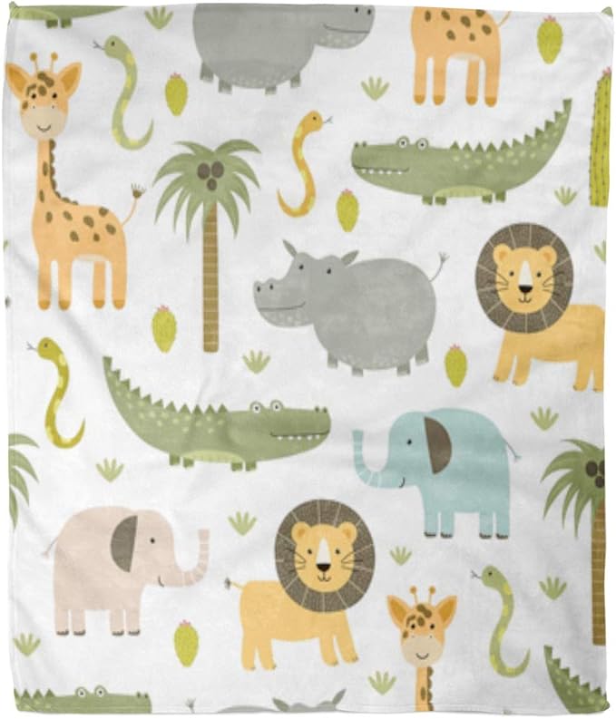 Amazon Com Golee Throw Blanket Safari Animals Cute Hippo Crocodile Lion Elephant And Giraffe 60x80 Inches Warm Fuzzy Soft Blanket For Bed Sofa Home Kitchen